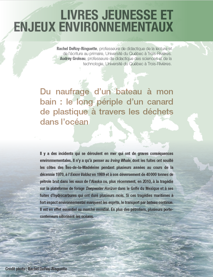 L’ouvrage que nous analysons dans cet article se base sur le naufrage de l’Ever Laurel, un porte-conteneur qui avait à son bord un chargement de jouets en plastique, notamment des milliers de canards jaunes que l’on fait voguer dans le bain des enfants.